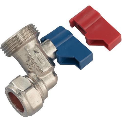 Washing machine tap connector supplied with a red and a blue lever. Can be used for washing machine and dishwasher.